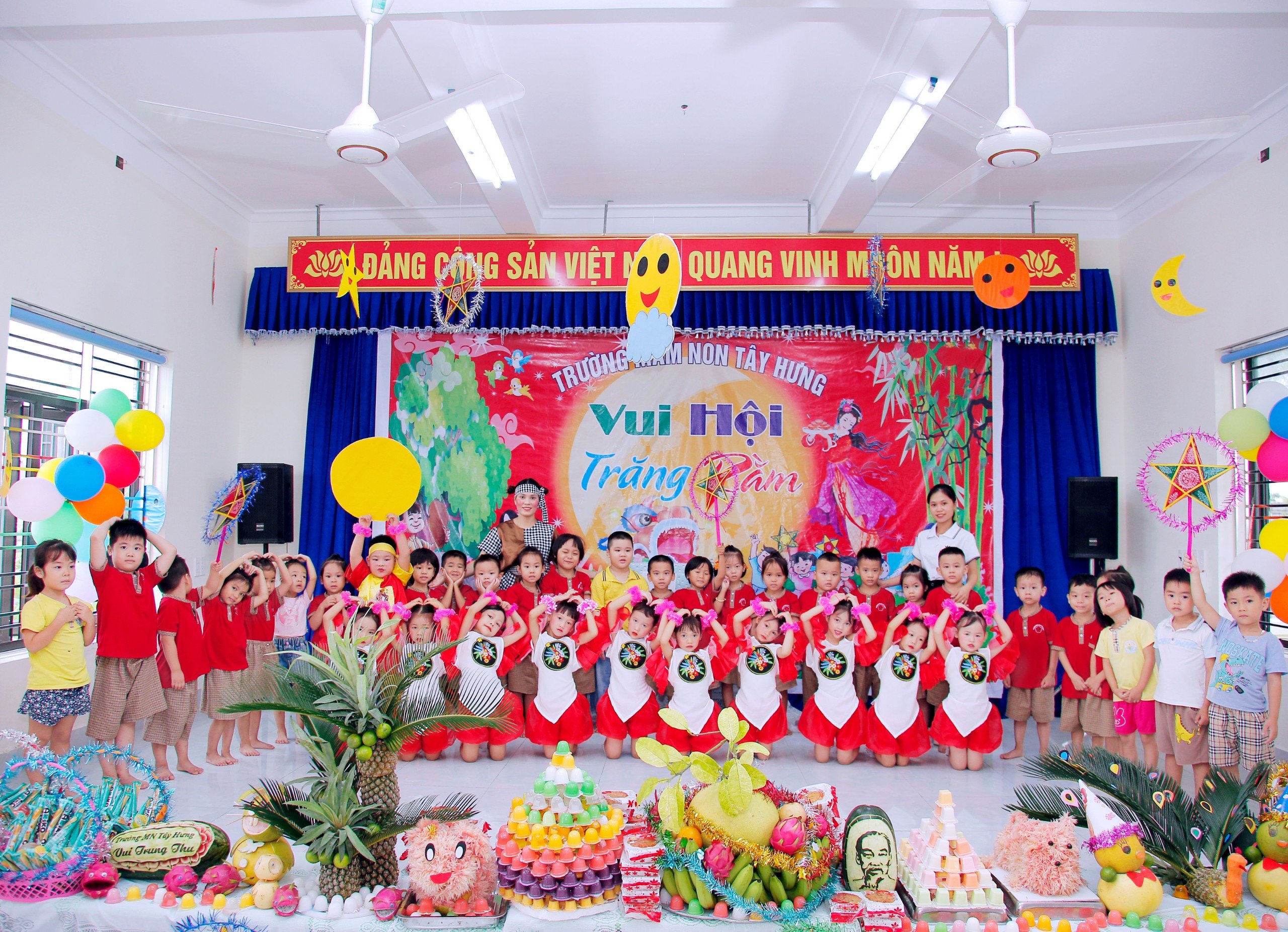 Một mùa trung thu lại về mang theo ánh trăng vàng rực rỡ, tiếng trống lân rộn ràng và bao tiếng cười trong trẻo của các bé trường mầm non Tây Hưng. Hôm nay, sân trường rực rỡ sắc màu của đèn ông sao, đèn cá chép, đèn lồng đủ màu sắc. Các bé vui mừng cùng múa hát, rước đèn cùng phá cỗ và cùng nhau đón một mùa trung thu đầy ý nghĩa. Tết trung thu không chỉ là ngày hội của trăng, của đèn và bánh, mà còn là dịp để cô và trò cùng gửi gắm tình yêu thương, chia sẻ niềm vui và gắn kết như một gia đình nhỏ ấp áp. Chúc các bé có một mùa trung thu tràn đầy niềm vui, tiếng cười và những ước mơ đẹp bay cao cùng ánh trăng vàng!