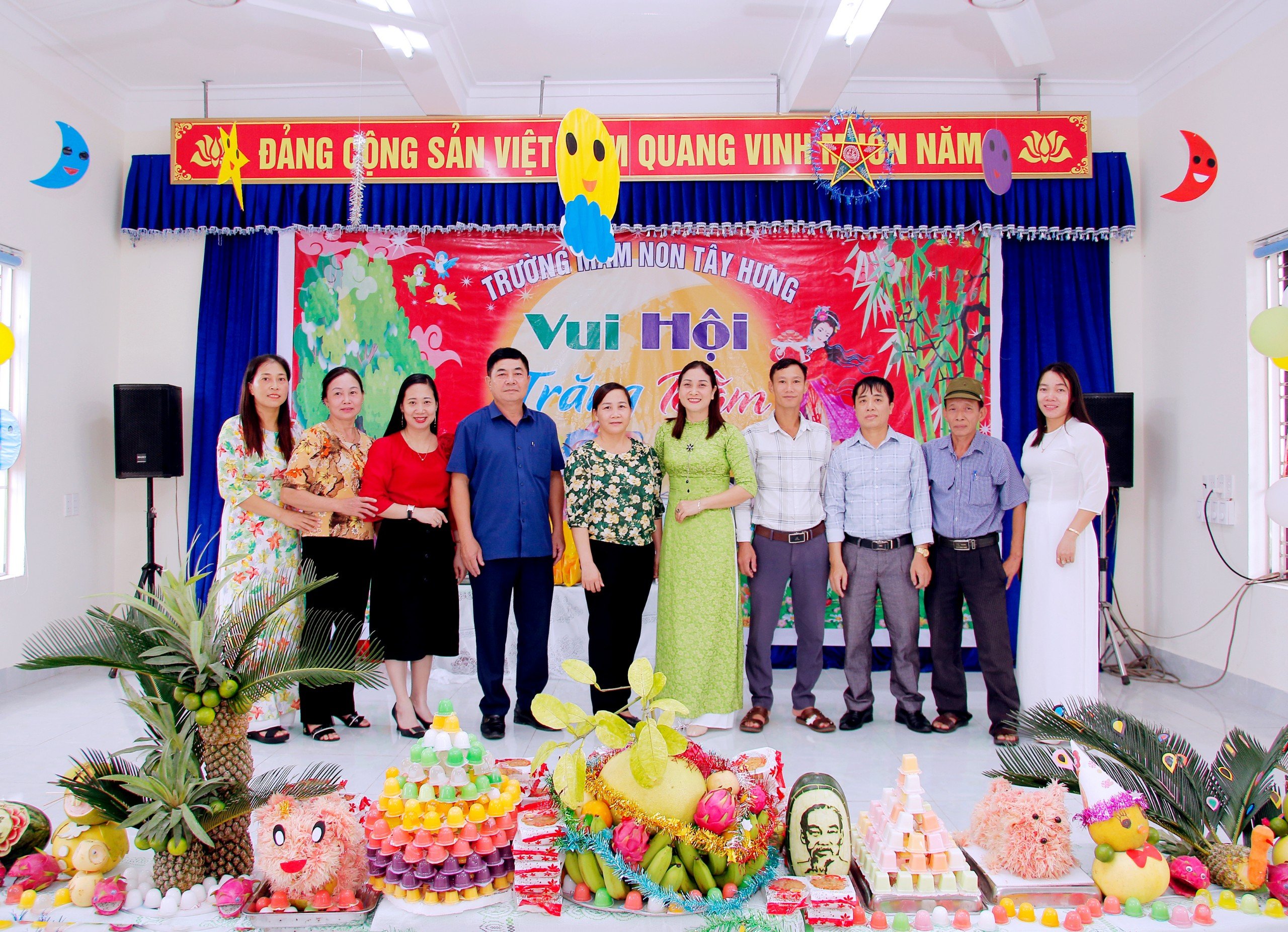 Vậy là một mùa trung thu nữa lại về với bao cảm xúc. Các bé được gặp anh Cuội, chị Hằng Nga... những nhân vật bước ra từ thế giới cổ tích. Các bé được học nhiều điều hay qua những câu chuyện cổ tích đó. Các bé còn có nhiều những trải nghiệm thú vị. Trong ngày trung thu các bé đón nhận sự quan tâm của Huyện ủy, HĐND, UBND, UBMTTT, PGDĐT huyện Tiên Lãng và của ĐU, HĐND, UBND, UBMTTT xã Tây Hưng. Nhà trường xin trân trọng cảm ơn sự quan tâm, tình cảm yêu mến của các cô, các bác đã giành cho các bé. Xin cám ơn các bậc phụ huynh đã phối hợp cùng nhà trường tổ chức và mang đến cho các con những điều tuyệt vời. Xin trân trọng cám ơn. Dưới đấy là một số hình ảnh trong ngày hội