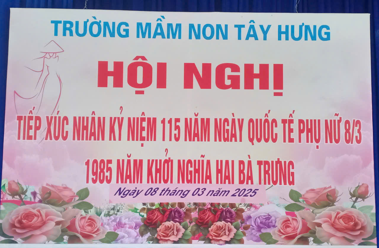 Nhân dịp kỉ niệm 8/3 và khởi nghĩa hai Bà Trưng trường MN Tây Hưng long trọng tổ chức hội nghị tiếp xúc, tôn vinh những người phụ nữ luôn cống hiến hết mình vì nghiệp trồng người nhưng không quên nhiệm vụ một người vợ, một người mẹ, để làm tròn được những nhiệm vụ đằng sau đó không thể thiếu những đức phu quân... cám ơn tất cả những tình cảm của các phu quần trường Mn Tây Hưng trong ngày 8/3. Xin trân trọng cám ơn!