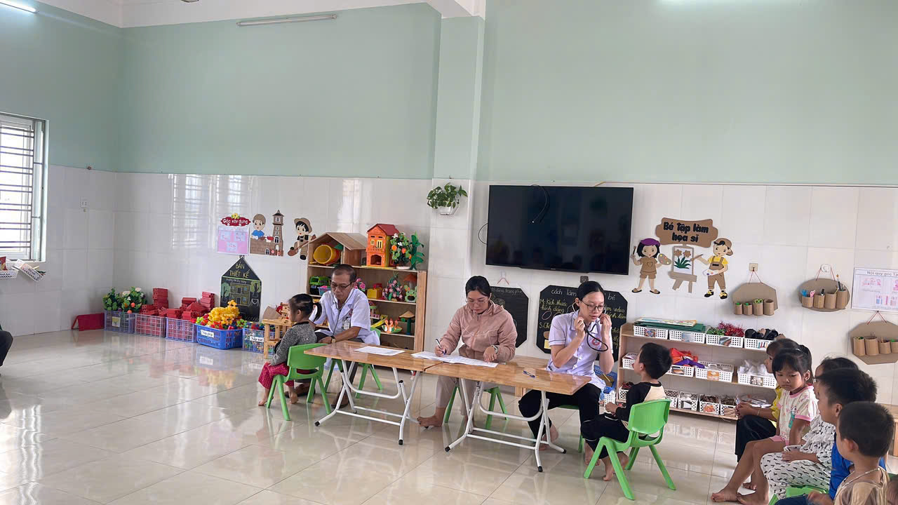 Hôm nay ngày 16/09/2025. Trường MN Tây Hưng phối hợp với trạm y tế xã tổ chức khám sức khỏe định kỳ cho trẻ.