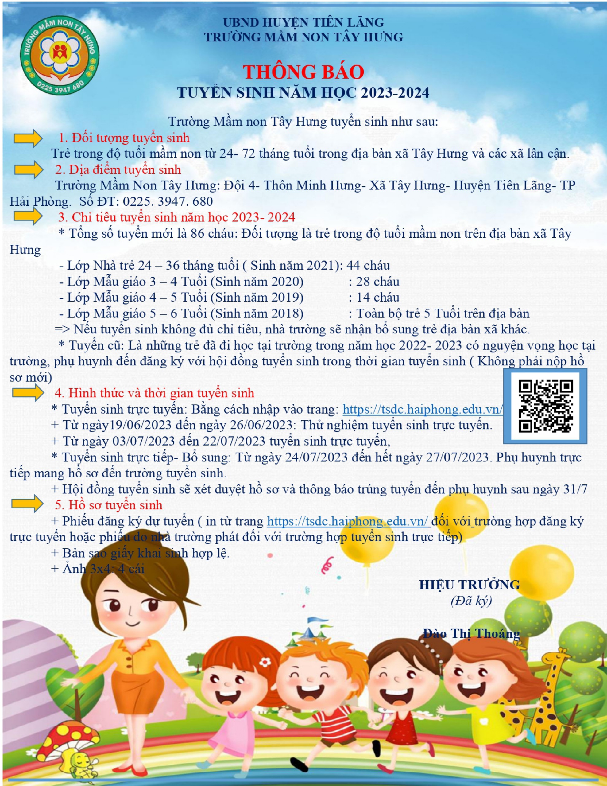 Thông báo tuyển sinh năm học 2023-2024 của trường Mầm non Tây Hưng