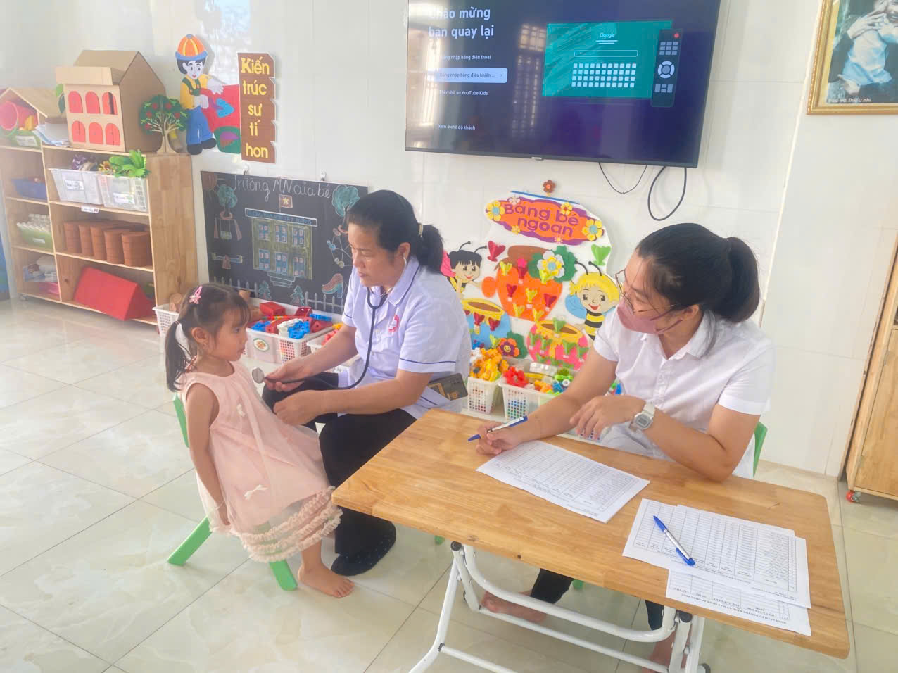 Hôm nay ngày 16/09/2025. Trường MN Tây Hưng phối hợp với trạm y tế xã tổ chức khám sức khỏe định kỳ cho trẻ.